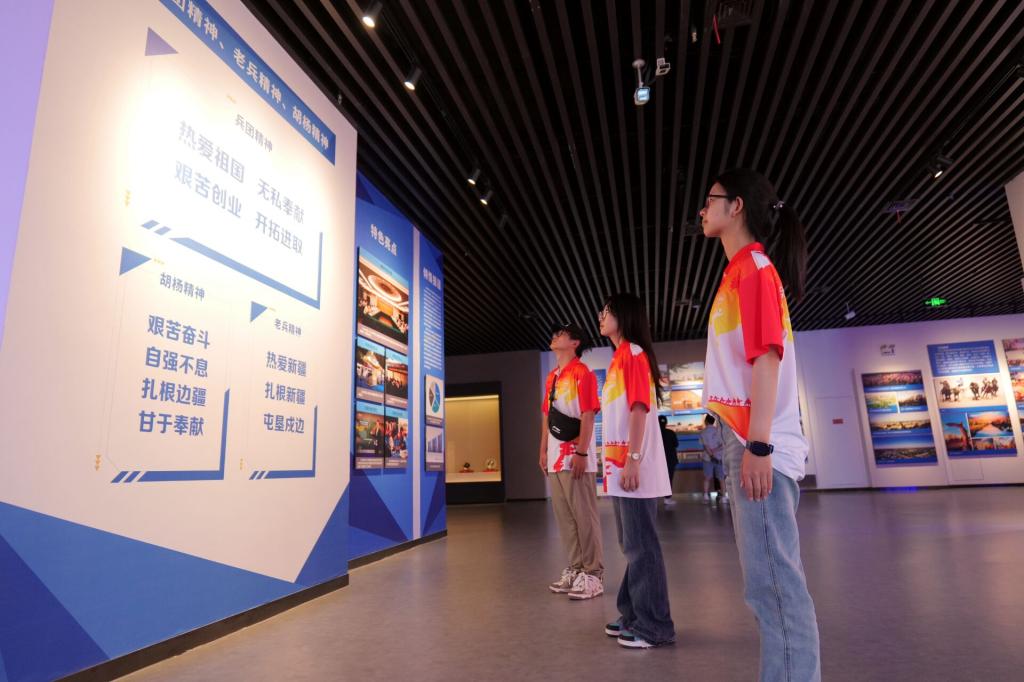 在三师图木舒克市实践期间,为深入了解新疆发展历程、兵团屯垦历史,实践团还专程来到新疆屯垦历史博物馆参观学习,进一步学习兵团精神和胡杨精神、老兵精神,从学习中回望祖辈们的奋斗历史,汲取奋进力量。