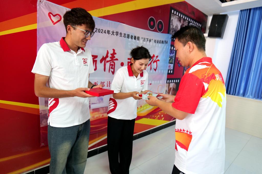 挥手告别之际,实践团还向各位志愿者、胡杨校友赠送了学校纪念品,祝愿他们能在祖国最需要的地方热血奉献,继续传承发扬胡杨精神,不负青春、不负人民,让青春在中国式现代化的实践中挺膺担当。