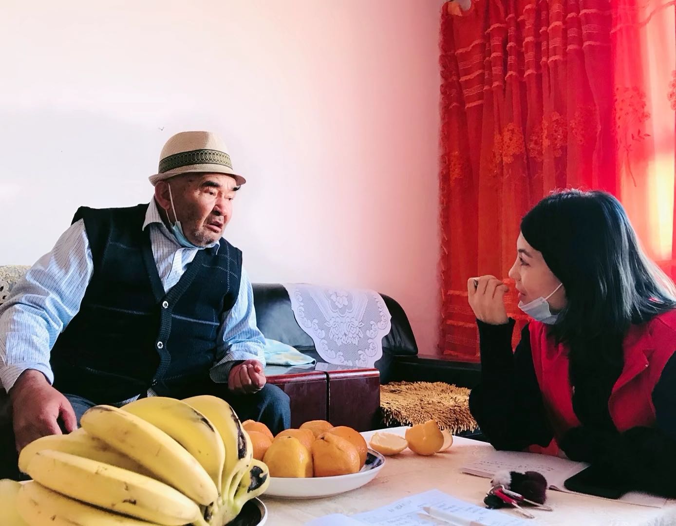 两位少数民族志愿者看见学校师生来访,激动的心情溢于言表。