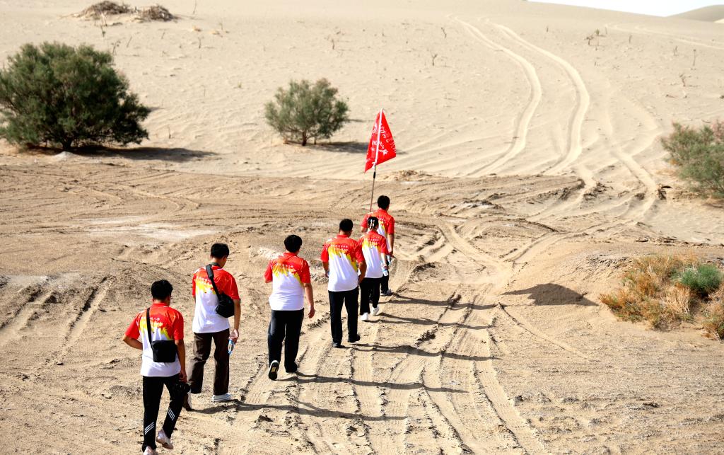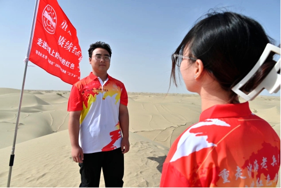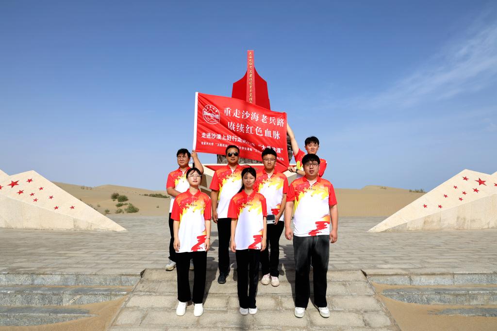 从城市到戈壁,从绿洲到沙漠,从软沙到硬沙,从平地到沙丘。团队成员徒步行走三公里,用脚步丈量沙漠,用身体感受风沙,体验革命先辈曾走过的死亡之海。