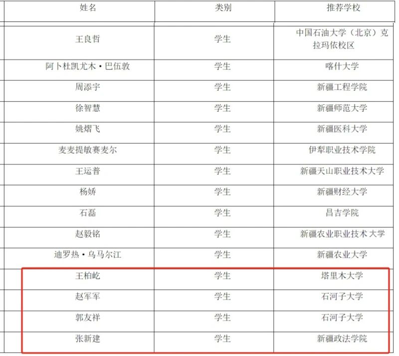 2023—2024年度“高校毕业生基层就业卓越奖”兵团学生获奖人选名单