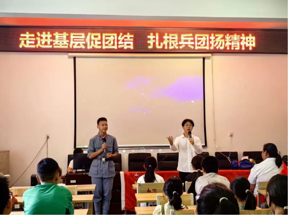 石河子大学大学生宣讲团深入第四师可克达拉市六十六团及其周边社区与连队,成功举办了7场“红心向党,青春献礼”红色文化宣讲活动,覆盖听众800余人次。团队以习近平新时代中国特色社会主义思想为指导,将伟大建党精神、兵团精神等融入宣讲,并通过“星火燎原”“信仰如炬”“复兴征途”三大篇章,巧妙结合理论宣讲与情景演绎,生动展示党的光辉历程和伟大成就,让理论知识更加生动、贴近百姓,让党的声音和理论精髓飞入寻常百姓家。