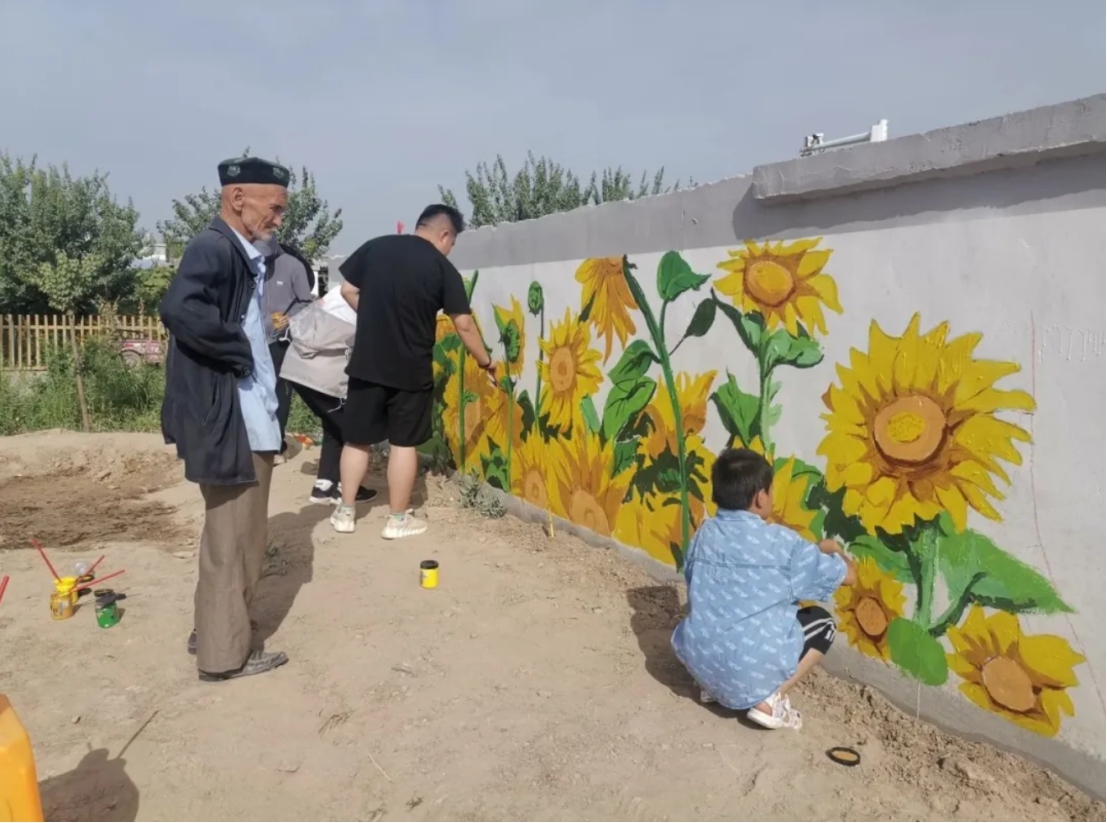 石河子工程职业技术学院人文社科系大学生暑期“三下乡”社会实践团在第三师图木舒克市五十一团十二连开展墙绘活动,以艺术助力乡村振兴。前后历时半个月创作墙绘100平米,实践团以墙面为画布,运用鲜艳的色彩和细腻的笔触,将美丽乡村的景象栩栩如生地呈现出来,实现了艺术与乡村生活的和谐交融。实践团的努力,不仅让乡村面貌焕然一新,更激发了村民对美好生活的向往和追求,为乡村振兴战略的实施贡献了青春力量。