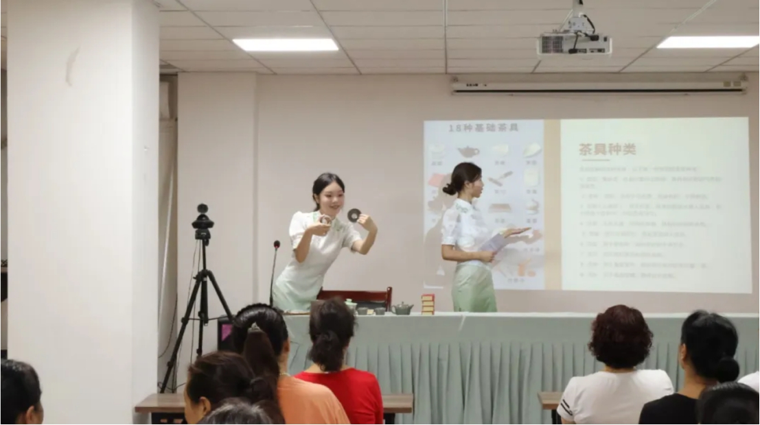 石河子大学礼仪团中华文化传承实践团以茶文化为纽带,结合知识宣讲与互动体验,为第八师石河子市22社区72位居民带来了主题为“观茶、听茶、泡茶、品茶”的沉浸式学习课程,使居民在茶香四溢的氛围中感受中华优秀传统文化的魅力。实践团还精心策划汉服走秀与民族舞蹈表演,其中汉服走秀从端庄典雅的汉制礼服到雍容华贵的唐风汉服,共向居民展示了13套风格各异的传统服饰。此外,实践团还自编自导自演有关“餐桌礼仪”与“公交车乘车礼仪”的情景剧,为居民呈现了一场视听盛宴。