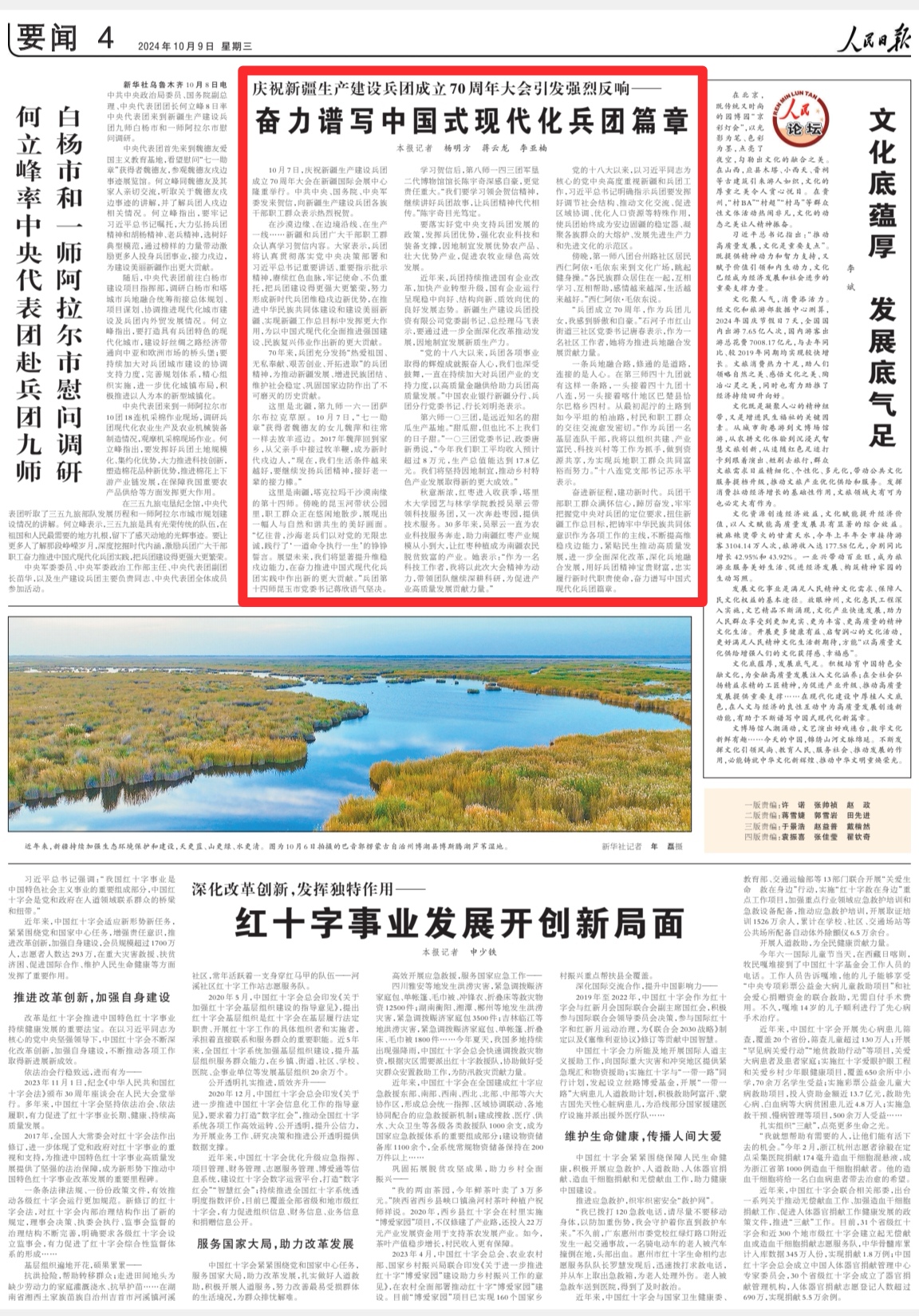 人民日报头版刊发报道:新疆生产建设兵团成立70年来接续奋斗、维稳戍边