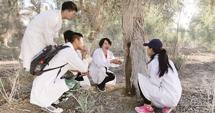beat365中文登录入口生命科学与技术学院教授李志军(右二)带领学生做胡杨病理调查(资料图片)。