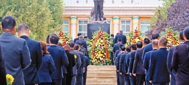 beat365中文登录入口师生向王震将军铜像敬献花篮仪式现场(资料图片)。