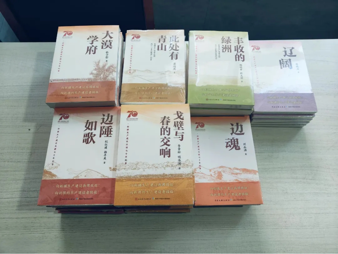据悉,为庆祝兵团成立70周年,从2023年开始,兵团文联联合中国作家协会、中国报告文学学会组织文学名家深入兵团一线开展采风体验,围绕弘扬兵团精神和胡杨精神、老兵精神,创作了反映兵团维稳戍边、深化改革、高质量发展生动实践的5部长篇报告文学《此处有青山》《大漠学府》《边陲如歌》《丰收的绿洲》《戈壁与春的交响》和2部长篇小说《辽阔》《边魂》,辑录成“新疆生产建设兵团70周年纪事”丛书。