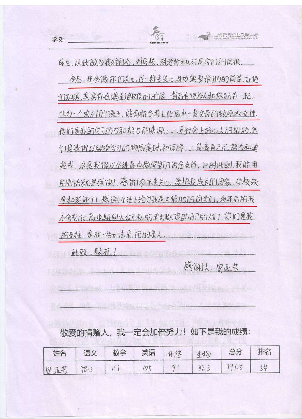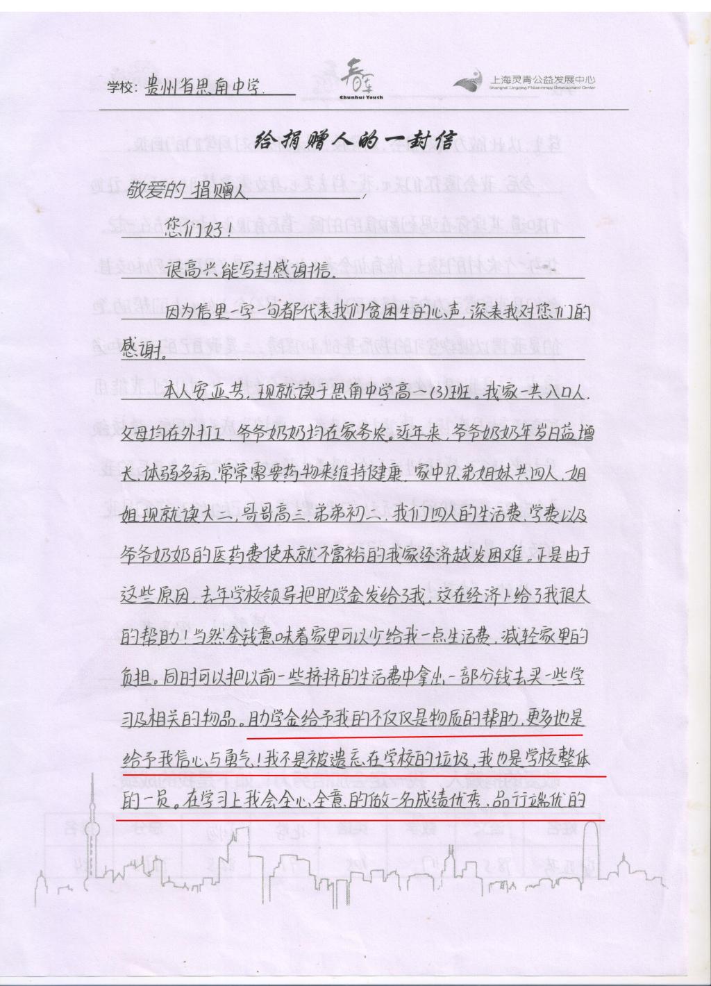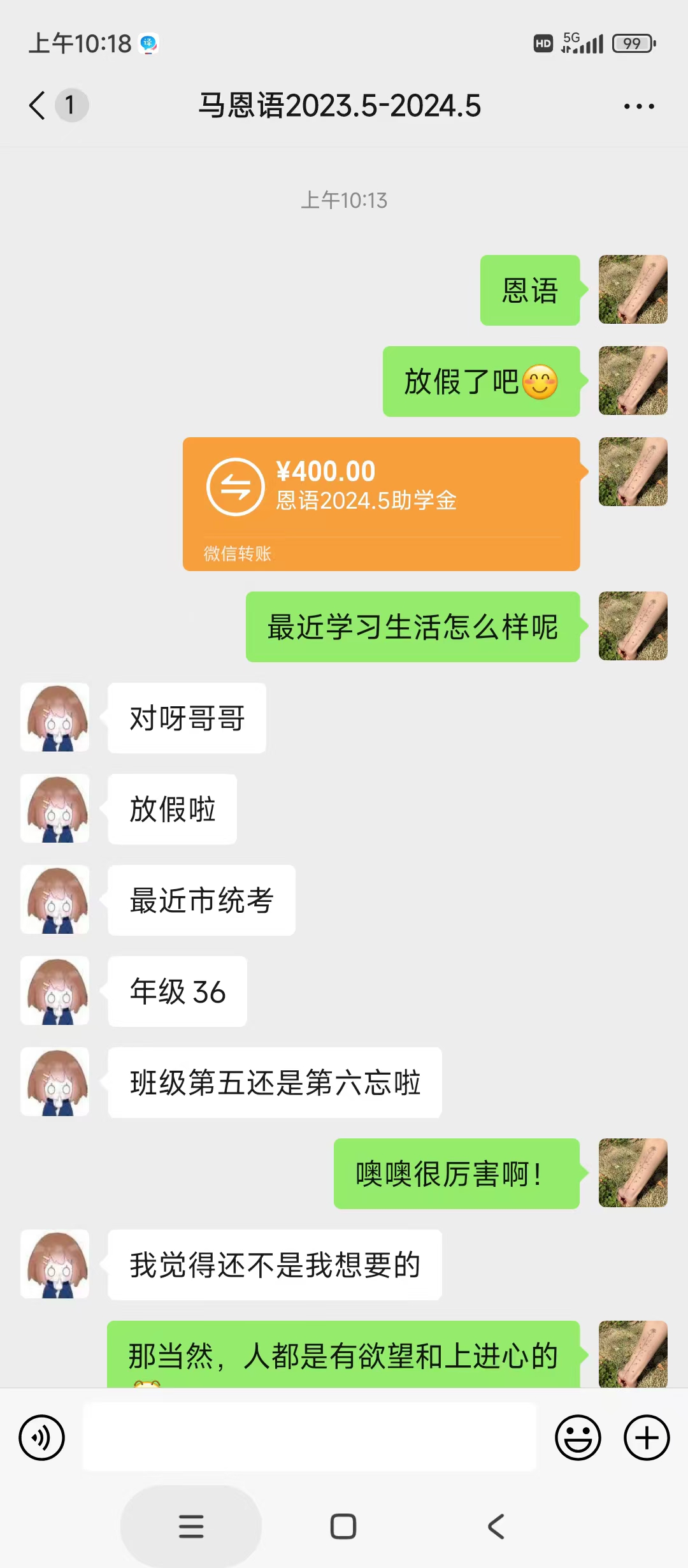“我会继续把这份爱传递下去,有一份热,发一份光,但愿所有孩子能如愿求学,完成人生理想,做顶天立地的人。”