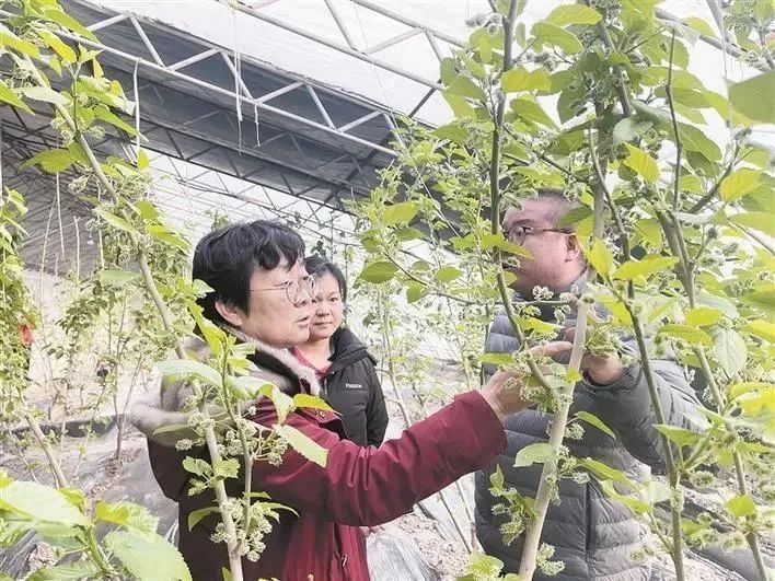 吴翠云为职工讲解桑葚种植技术。资料图片