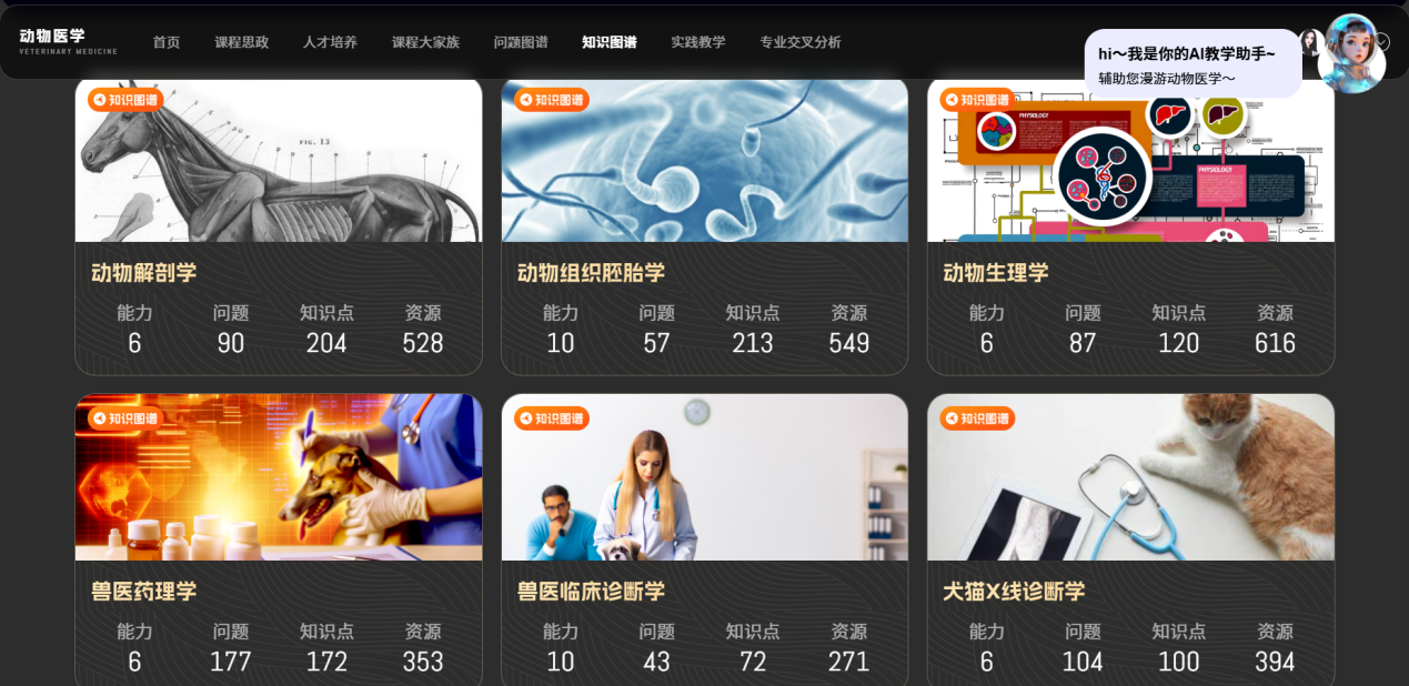 据悉,动物医学专业图谱由beat365和智慧树网共同建设,有效实现了AI技术与教育教学深度融合,为培养复合型兽医人才提供坚实支撑。该图谱以人才培养为目标,以毕业要求为指引,以六维结构为模型,将图谱分为七大部分,有效实现专业知识点、典型问题、思政点、实践点有机融合,推动动物医学专业资源建设集中化、结构化、数字化和可视化,为学生提供了全新学习路径。
