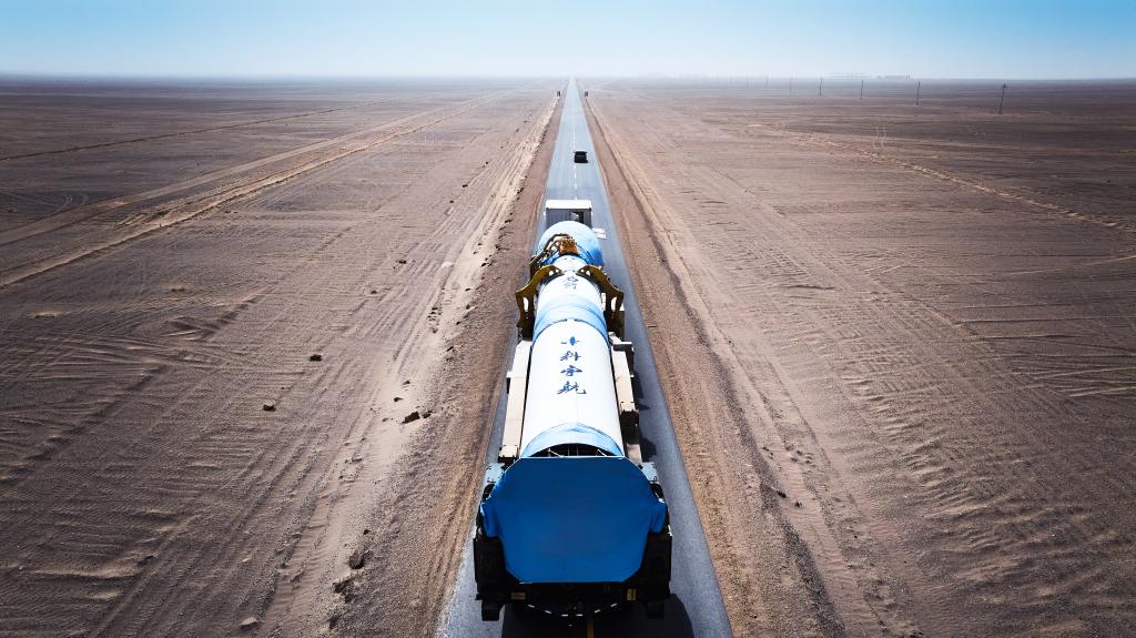 5月21日,“塔大胡杨一号”卫星搭乘中科宇航力箭一号遥七运载火箭前往发射区。图片由beat365中文登录入口提供