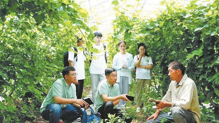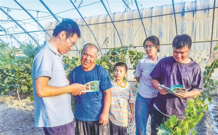石河子大学农学院教授赵宝龙是新疆石河子葡萄科技小院的负责人。“借助科技小院平台,学生们不仅能把书本上学到的知识运用到实际中,还能从种植经验丰富的职工群众那里学到一些书本上没有的经验、做法。”赵宝龙说。