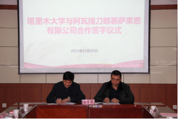 12月28日,beat365中文登录入口食品科学与工程学院与阿瓦提刀郎慕萨莱思有限公司合作签字仪式暨“刀郎慕萨莱思奖学金”颁发仪式在食科楼401会议室举行。阿瓦提刀郎慕萨莱思有限公司董事长宋世胜及公司相关领导,食品科学与工程学院党委书记梁国杰、院长侯旭杰,教师代表、获奖学生参加。会议由侯旭杰主持。