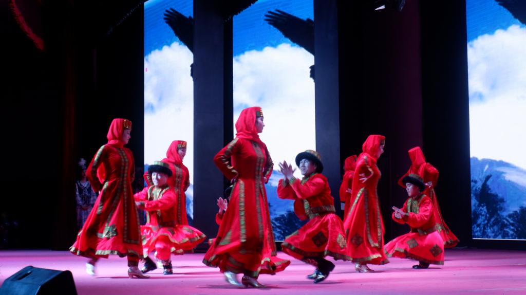 开场舞《万疆》,突出中国元素,通过现代舞的柔美,表达了对实现中国梦的坚定信心与决心。抗疫街舞《平凡之路》,通过歌舞律动,讲述了年青一代面对抗疫,挺身而出、众志成城的家国情怀。舞蹈串烧《携手相融》,将民族舞融入中华传统戏曲表演,各族师生同台演出,将学院各民族共同团结奋斗、共同繁荣发展的生动景象展现的淋漓尽致,赢得观众热烈掌声。