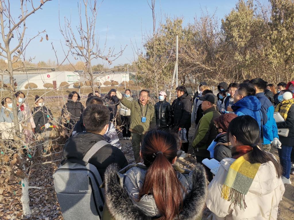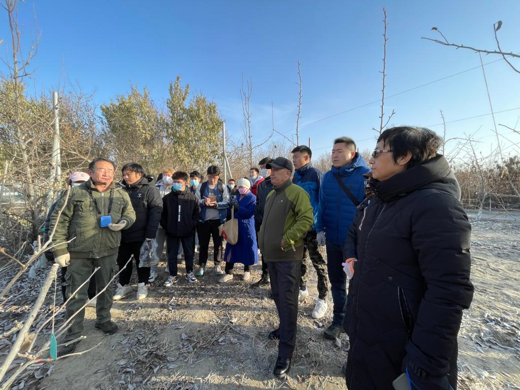 11月29日,在学校园艺实验站。园艺与林学学院组织青年教师现场观摩学习果树冬季管理技术。