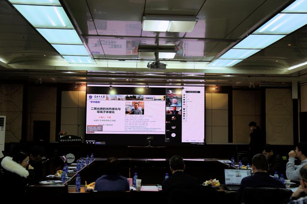 潘凯教授、密建国教授、张继文教授、于锋教授、魏涛副教授、吴登峰老师、田维亮教授,分别作了题为“新型尼龙树脂制备及应用”“用于二氧化碳捕集的新材料结构设计与大规模制备”“小分子天然产物农药研究与应用”“二氧化碳的光热催化与等离子体催化”“多酸基MOF材料作为锂离子电池电极材料的研究”“种子介导法控制合成酮基一维纳米结构及电催化性能研究”“新疆蛭石产业发展现状”的学术报告。