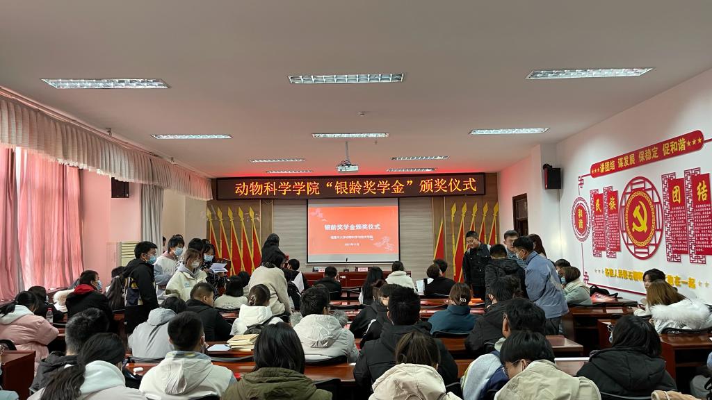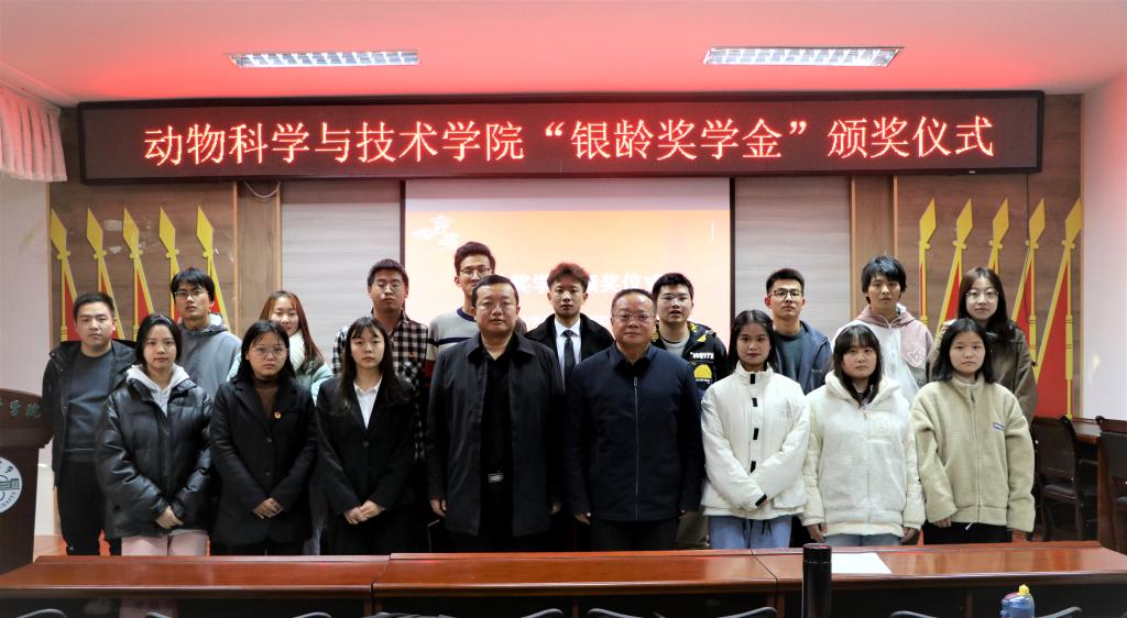 11月20日下午,动物科学与技术学院举行第二届“银龄奖学金”颁奖仪式。动科院党委副书记、院长高庆华,党委副书记魏晓柳,30名获奖学生和学生代表参加仪式。仪式在动科楼318会议室举行。