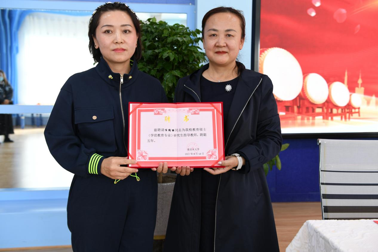 人文学院聘塔里木第二幼儿园负责人任绚丽为教育硕士(学前教育)研究生导师,并颁发了聘书。