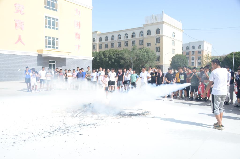 活动由火灾逃生演练、灭火演练组成。在逃生演练过程中,随着警报声响起,同学们在现场工作人员的引导下,用湿毛巾、衣服等掩住口鼻,弯腰迅速按照规定的路线安全有序逃离。一分钟后,火灾应急处置小组到达现场,三分钟后,全体同学到达避难点。保卫部工作人员为同学们演示了手提式干粉、干冰灭火器的正确使用方法。20余名学生现场进行了灭火操作。