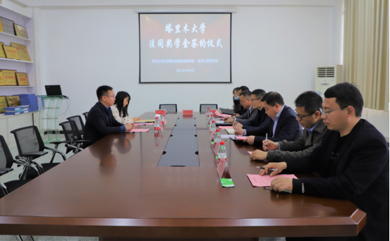 4月9日上午,经济与管理学院与阿拉尔市法同职业技能培训学校举行“法同奖学金”签约仪式。学院党委书记田国林、党委副书记、院长蒋志辉、新疆阿拉尔市法同职业技能培训学校执行董事、校长赵永杰、办公室主任田曼出席签约仪式,学院有关人员参加仪式。仪式由学院党委副书记谷建杰主持。