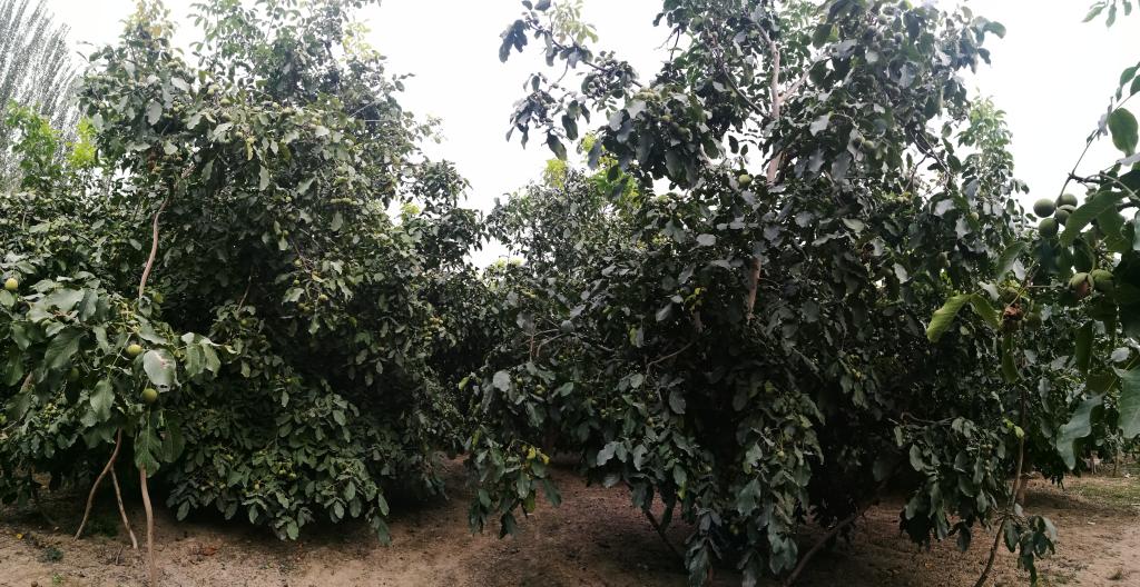 服务团在三团林业站站长罗立新和三团十三连连长郭龙带领下,分别前往各核桃示范园,核实核桃“三施、三剪、三防”提质增效技术措施落实情况。