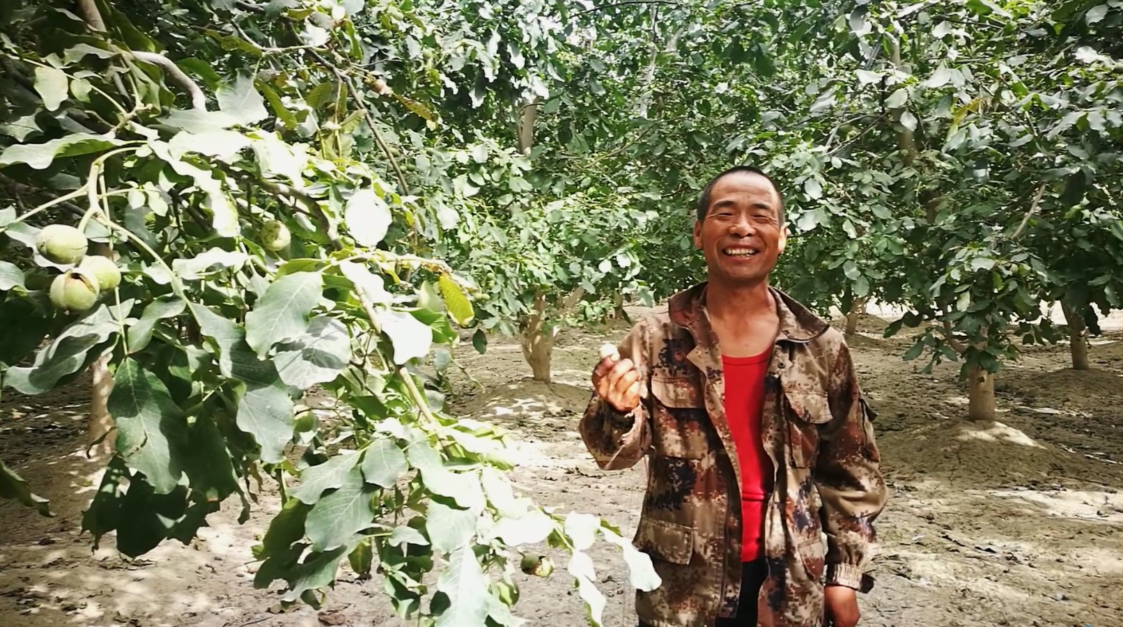 经过团队仔细核实和调查,盛果期核桃示范园平均亩产高达500公斤,主干形核桃示范园结果初期平均亩产达到300公斤,每到一个核桃园,种植户脸上都洋溢着丰收的喜悦。十三连职工苏小明更是激动万分,对核桃团队布置的“三施、三剪、三防”技术熟练掌握,苏小明说:“非常感谢beat365中文登录入口核桃服务团队,正是有你们冒着严寒和酷暑、顶着疫情和风沙来给我们技术指导,才有了我今天的核桃大丰收。”
