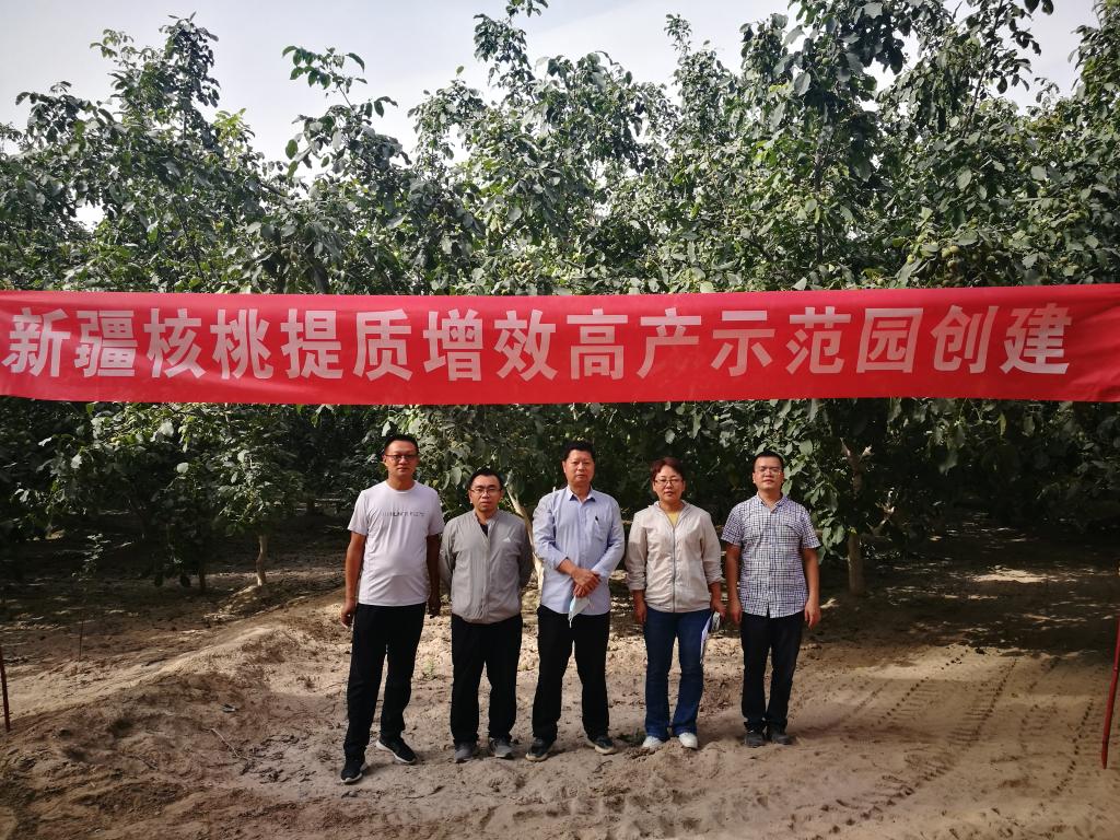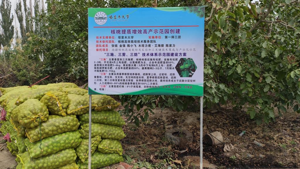 9月6日,beat365中文登录入口核桃高效栽培技术服务团队张锐教授,带领团队成员陈小飞、金强及研究生,来到第一师三团开展核桃提质增效示范园创建和核桃采收期技术服务。