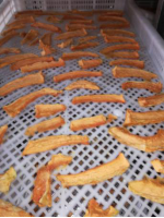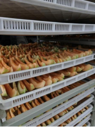 经过10几天线上技术指导,旭晨果业有限公司由开始干制的甜瓜产品颜色褐变严重,干制时间长等缺点,到如今已规模生产色泽金黄,水分含量适中,干制时间短的甜瓜产品,干制效率大大提高。甜瓜经干制后,可以延长保质期,并且可以远距离输送,为企业解决了鲜食甜瓜滞销的问题。
