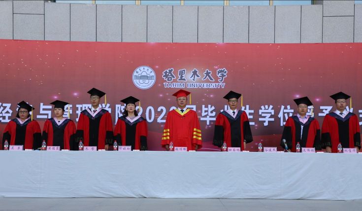 6月18日下午,经济与管理学院举行2020届毕业生硕士学位和学士学位授予仪式。党委副书记、校长张传辉,学院党委副书记、院长田国林,南疆经济社会发展研究院院长喻晓玲教授,学院党委副书记谷建杰,学院党委委员、各系负责人,全体辅导员及2020届毕业生代表参加。仪式由谷建杰主持,在文科楼实验楼前举行。
