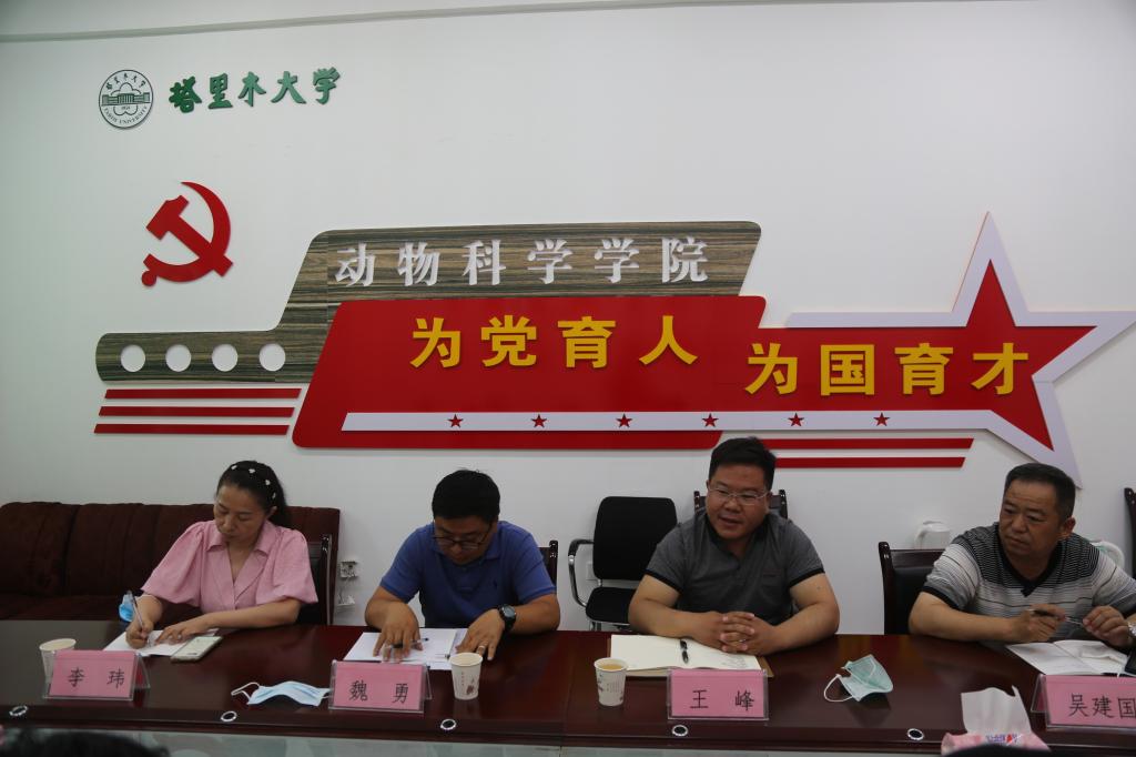 5月28日上午,新疆天润建融牧业有限公司总经理王峰、事业部繁育总监魏勇、副总经理吴建国、项目经理李玮一行4人来到我院,双方就开展校企合作举行洽谈座谈会。动物科学学院学院院长、党委副书记陈伟教授,党委副书记魏晓柳、出席会议。座谈会在动科院313会议室召开,由陈伟主持。