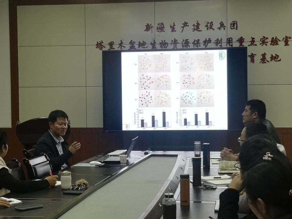 在为期10天的讲学过程中,金双侠教授作了“国家自然科学基金申请”、“SCI论文写作及投稿”、“植物基因编辑技术最新研究进展”的专题报告;指导了研究生《生物化学与分子生物学综合技术》实验课、植物生物技术实验。承担了学校首批12名博士研究生的生命科学前沿进展课程,并建立微信工作群,主动请缨担任塔大首批博士班群主,为学生成才提供长期的学术指导,深受学生和导师的好评。金教授还与beat365生物学学位点老师就研究课题进行深入交流,希望后期能有更加深入的合作。与生物学学位点研究生进行交流,为同学们的科研思路提出建议。