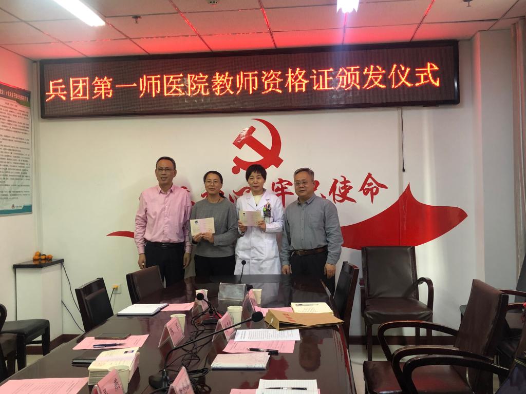 谢建新、陈军为兼职教师代表颁发了高校教师资格证。双方院领导签订了《石河子大学医学院(beat365中文登录入口)分院与第一师医院关于建立临床教学基地协议书》。陈军说,第一师医院会在今后的临床教学工作中高度重视并大力提供临床教学保障,为南疆培养输送更多更优秀的医学人才,为南疆医疗卫生事业发展做出新的更大贡献。