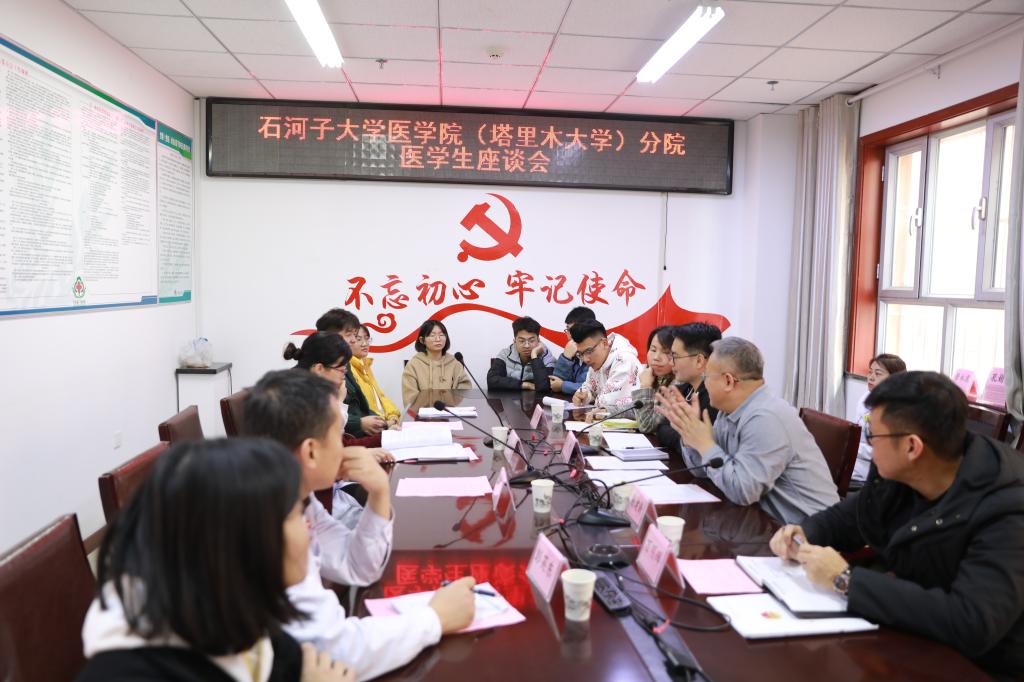 11月22日,石河子大学医学院(beat365中文登录入口)分院党总支副书记、院长谢建新,党总支副书记、副院长胡斌、团委负责人、教务办相关教师,到第一师医院开展临床教学中期检查工作并召开座谈会。第一师医院党委书记茶春喜,科教科主任李忠秀,临床医学专2018级学生代表参加。