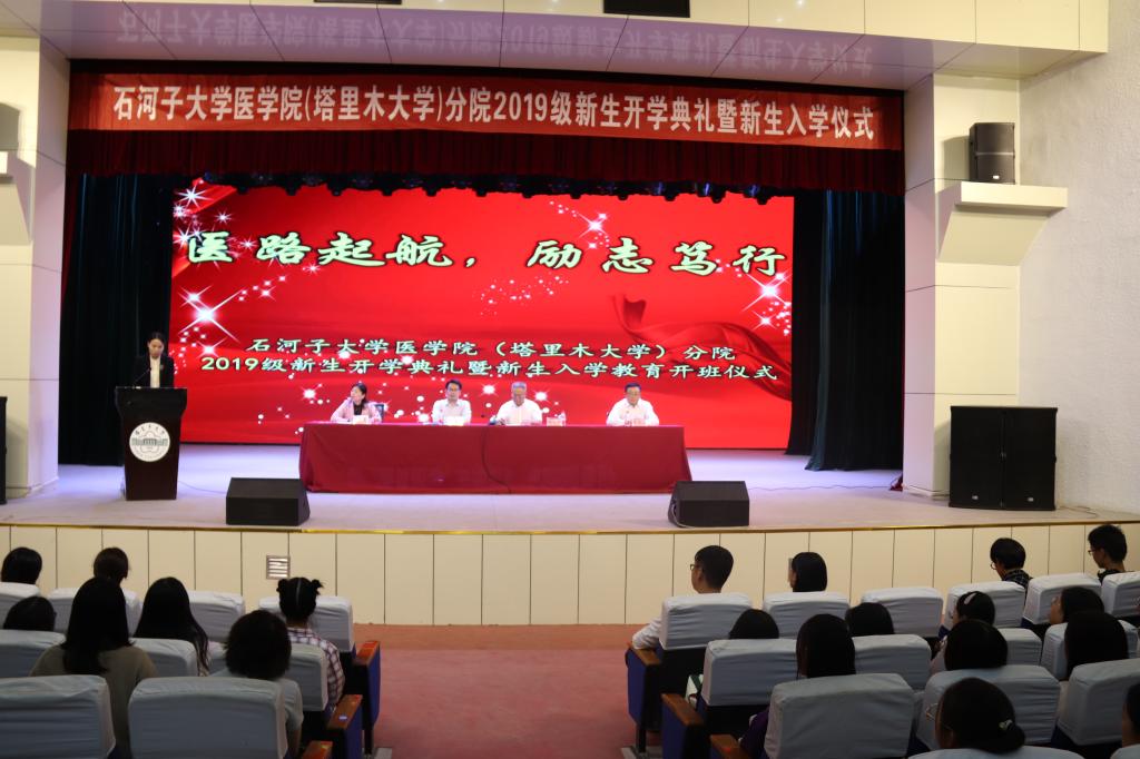 9月27日晚,石河子大学医学院(beat365中文登录入口)分院举行2019级新生开学典礼暨新生入学仪式。学院党总支副书记、院长谢建新,党总支副书记、副院长胡斌,副院长李思源,副院长吴燕,全体辅导员、班主任及全体2019级新生参加。典礼在大学生活动中心举行,由胡斌主持。