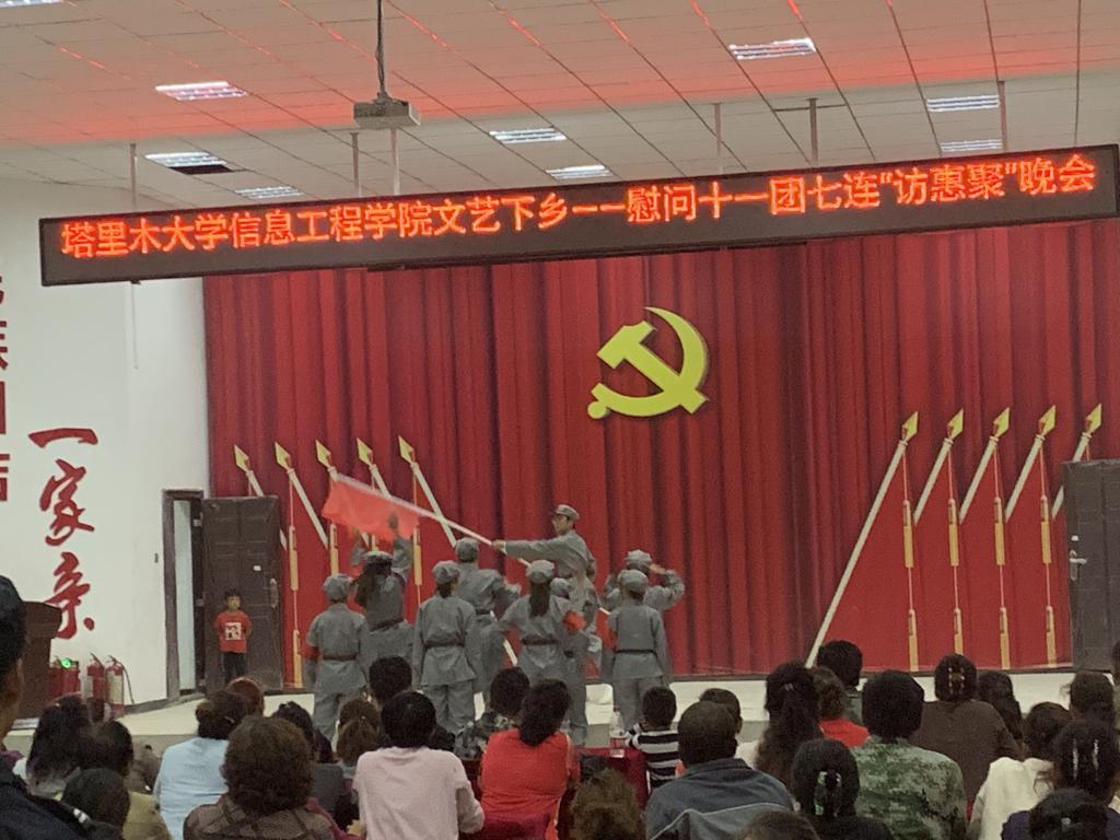 在中秋节来临之际,信息工程学院党委副书记张丽娟带领教师代表、学生赴十一团七连慰问看望beat365“访惠聚”工作队,为工作队和连队职工在中秋节前送上节日的祝福和精彩的文艺节目。