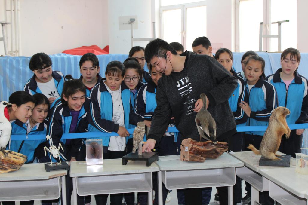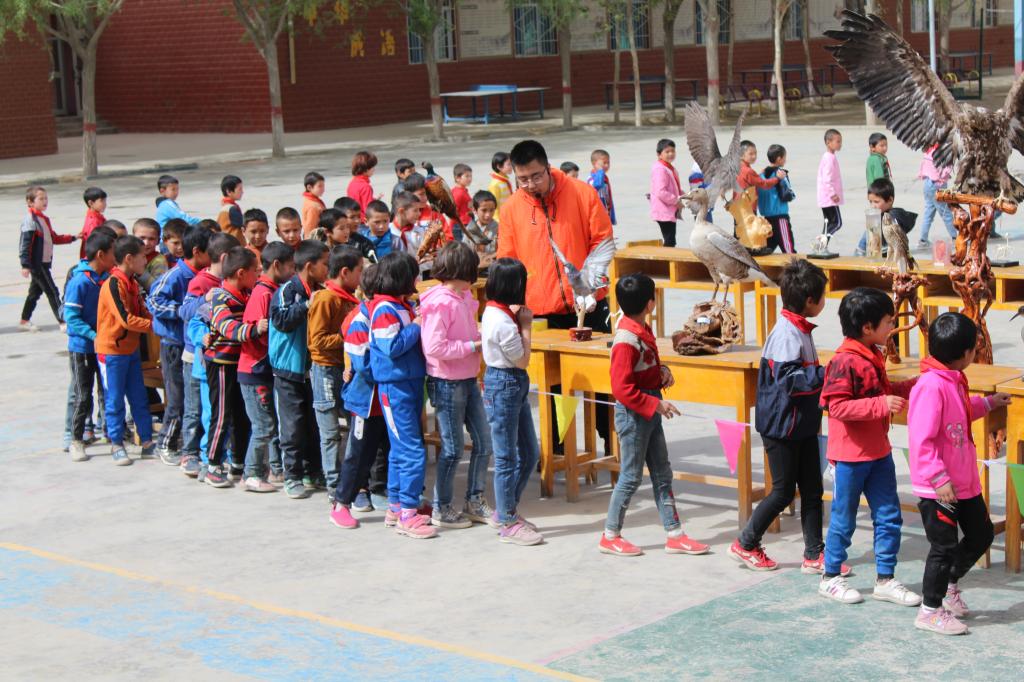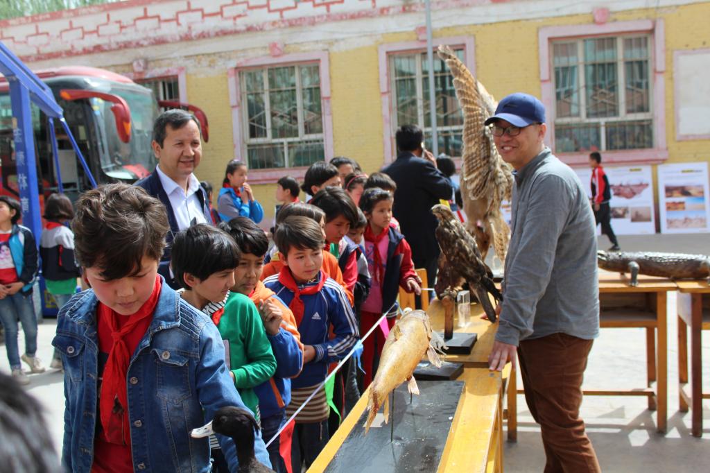为发挥文化引领作用,弘扬科学精神,培养公民保护环境及野生动物的意识,在爱鸟周和世界地球日来临之际,在学校科协、统战部支持下,民盟beat365中文登录入口支部、历史与哲学学院、生命科学学院师生深入南疆基层及农村中小学,开展了主题为“保护环境 和谐共生”野生动物保护宣传暨南疆野生动物标本展科普活动。