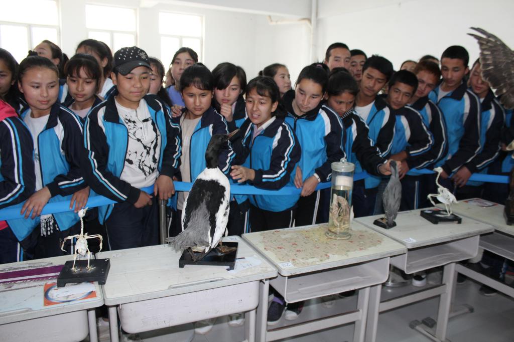 4月11日-13日,科普服务团先后进入和田地区墨玉县第五中学及墨玉县吐外特乡中小学开展科普活动。通过扁吻鱼(新疆大头鱼)、新疆岩蜥、塔里木兔、高山兀鹫等80余件动物实物标本的展示,辅以塔里木盆地环境变迁及生物多样性图片展板、宣传手册、问卷调查、科普纪念品发放等多种形式,向墨玉县青少年详尽介绍了环塔里木盆地生物多样性情况及作为生态脆弱区生态环境保护的迫切性和重要性。科普宣传结束后,科普服务团向部分学校赠送了用于课堂教学的骨骼标本和文具。
