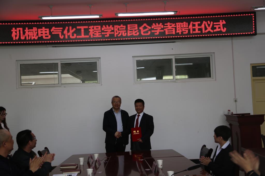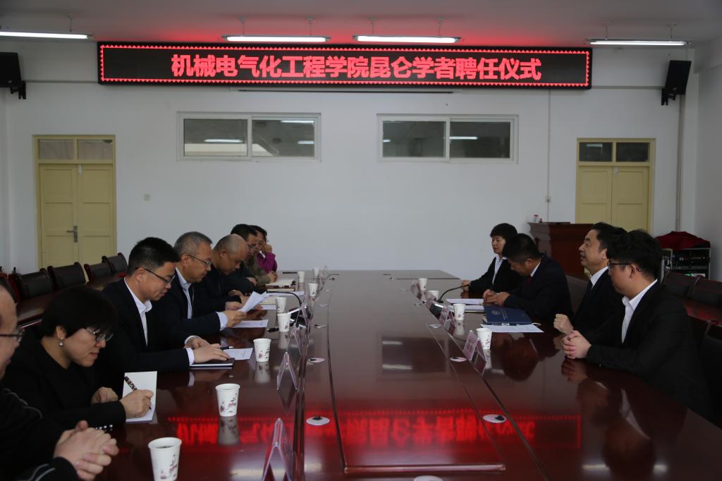 4月11日,学校“昆仑学者”聘任仪式举行。党委常委、副校长曲义勇,张兆国教授和贾富国教授,机电院院长弋晓康,人事处副处长严兆府,机电院副院长王旭峰,以及学院各系主任参加聘任仪式。仪式由弋晓康主持,在工科楼229会议室举行。