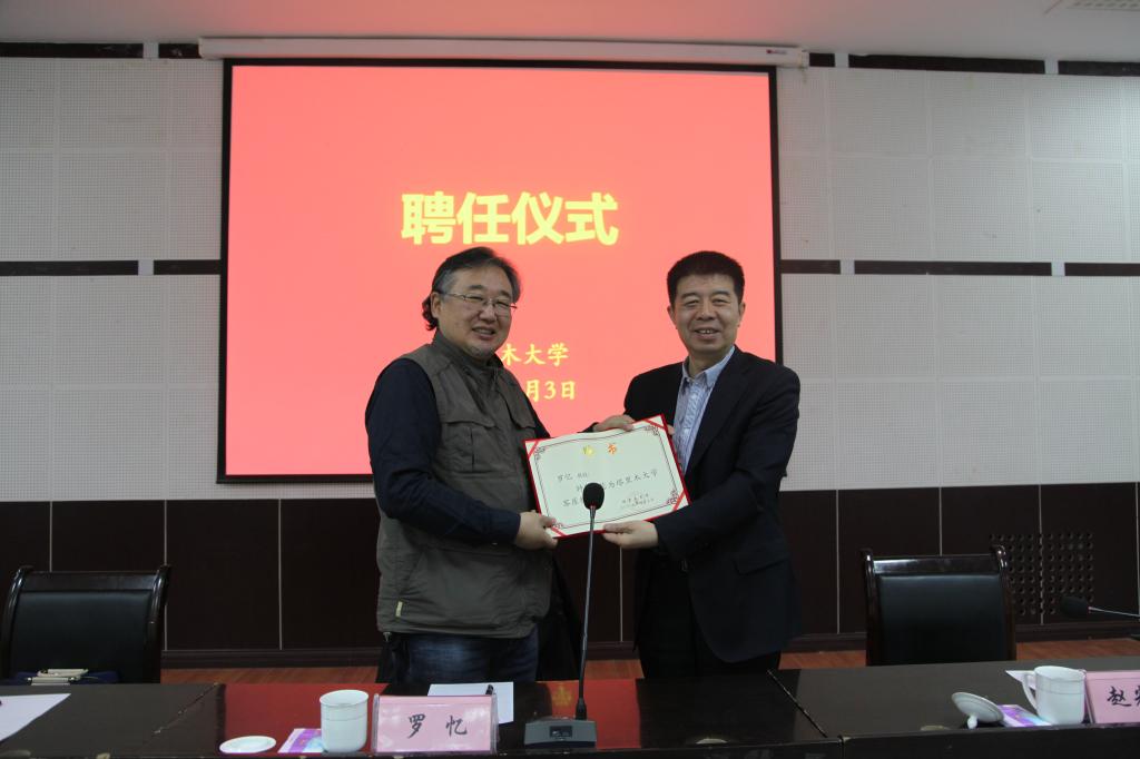4月3日上午,beat365中文登录入口举行客座教授聘任仪式。党委书记赵光辉为原新疆广播电视大学党委副书记、纪委书记,新疆大学新闻与传播学专业研究生导师罗忆教授颁发聘书,聘任罗忆教授为beat365客座教授。人文学院院长肖涛、传媒系师生代表参加聘任仪式,仪式在行政楼B座117室举行。