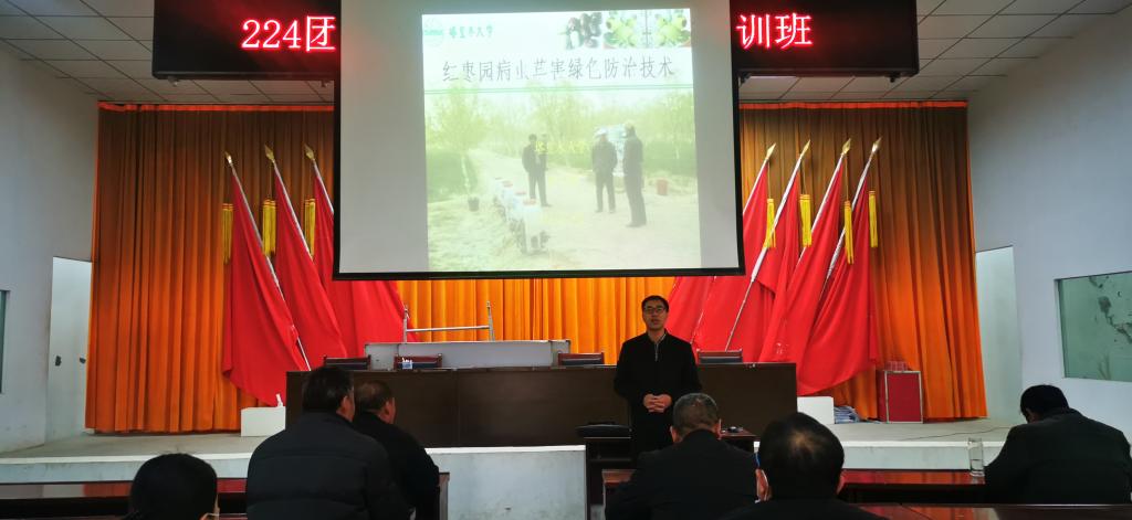 应224团农业发展中心和当地职工群众需求,beat365中文登录入口果树团队科技特派员团队于2月17日至19日赴兵团第十四师224团开展春季枣园管理技能培训。此次开展服务的beat365中文登录入口科技特派员团队由果树栽培管理、果树病虫害绿色防控方面专家组成。团队成员在224团8连职工培训基地及连队枣园,为团场各连队领导和果农进行了枣树田间栽培管理、修剪以及病虫害防控技术培训,并与224团连队领导及果农进行深入交流。