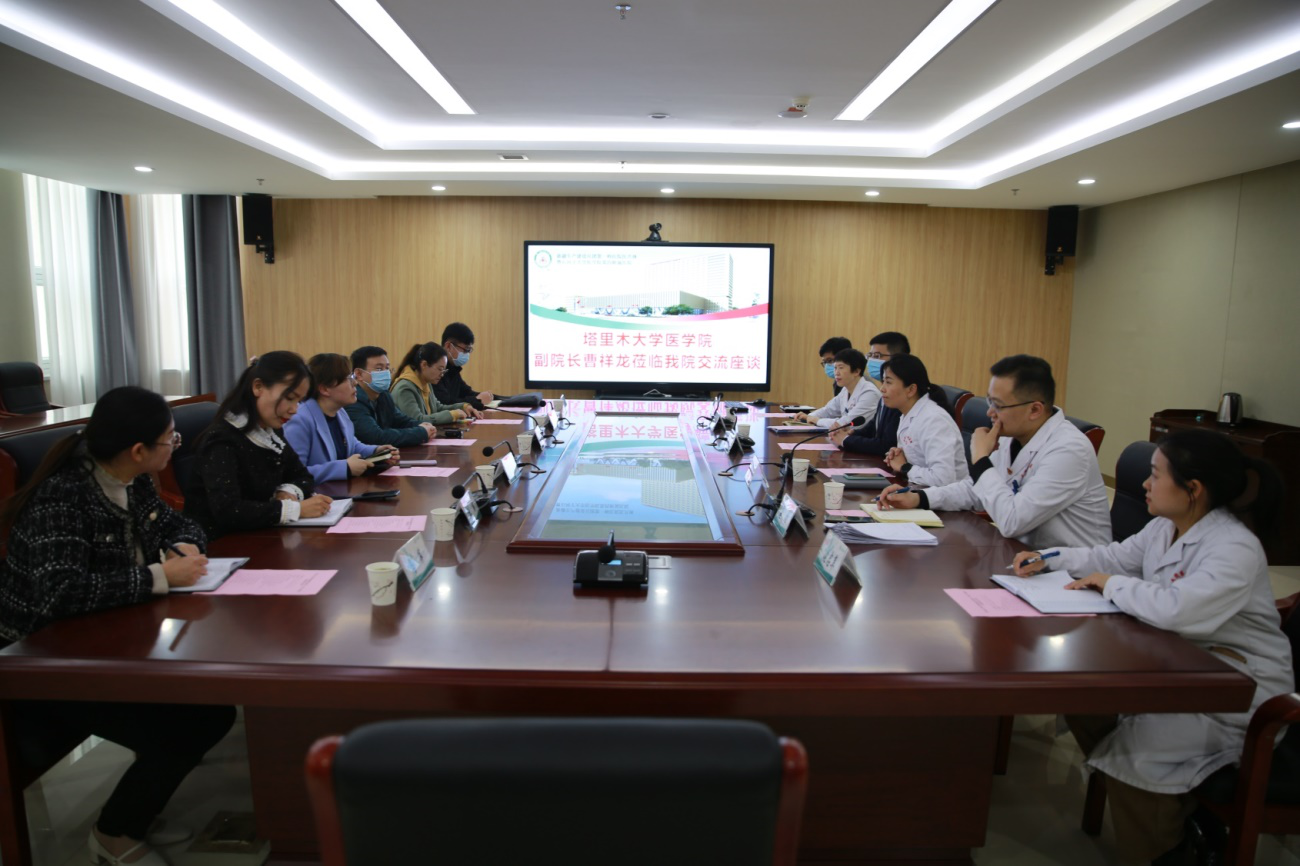 3月22日下午,医学院副院长曹祥龙一行赴第一师医院交流座谈。第一师医院党委副书记、院长陈大进,党委委员、副院长吴燕两院相关人员参加座谈。座谈会在第一师医院门诊5楼会议室召开。