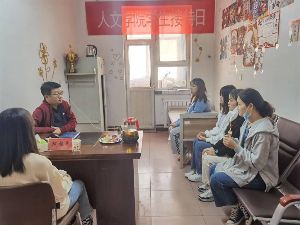 为帮助学生解决实际问题,人文学院自3月25日起设立“学生接待日”。由学院领导、辅导员、教师每周五下午在宿舍区为学生答疑解惑。