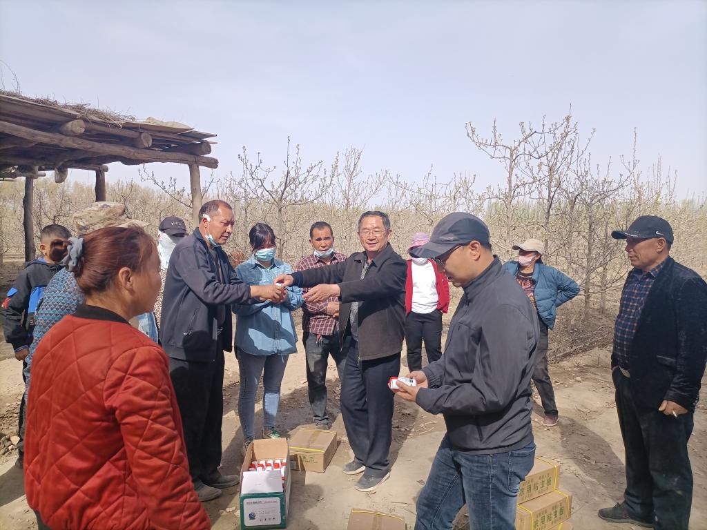 果园里,张琦教授就科学施肥、病虫害防治等方面对果农们进行耐心细致讲解和培训,并亲手示范,还无偿送给农户们“母梨剂”200份,黄板400份。