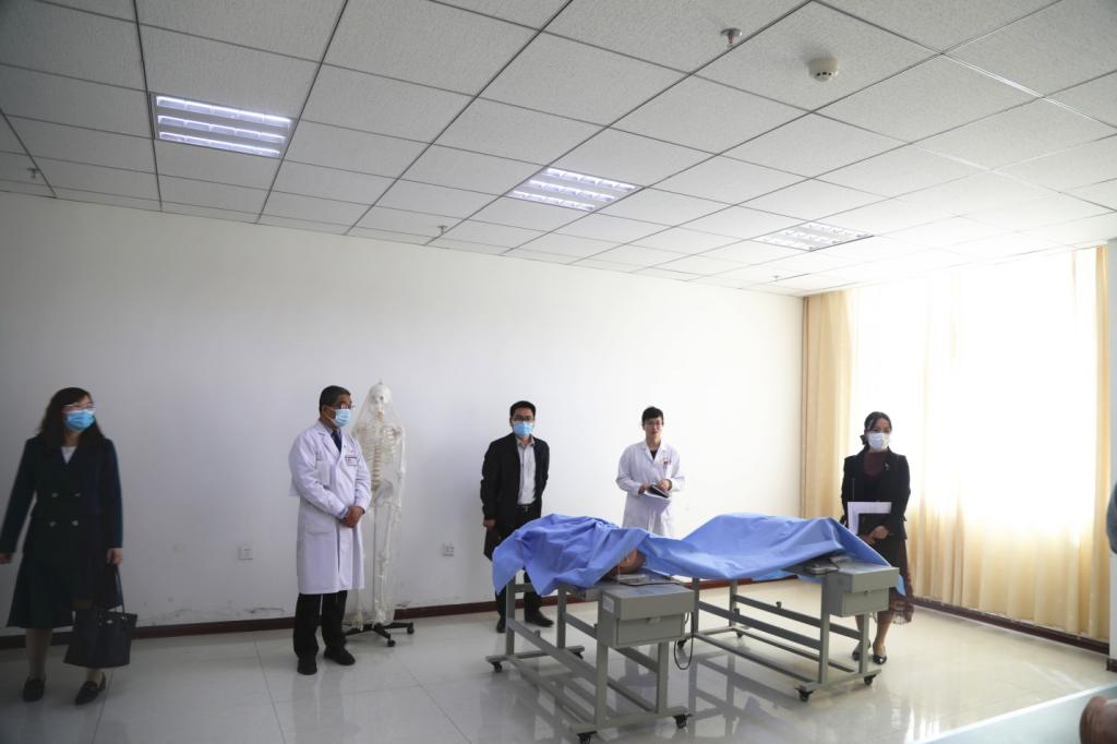 会后,考察了医院临床技能培训中心、教室、临床科室示教室、学生宿舍及食堂建设情况,看望了在医院实习的学生。