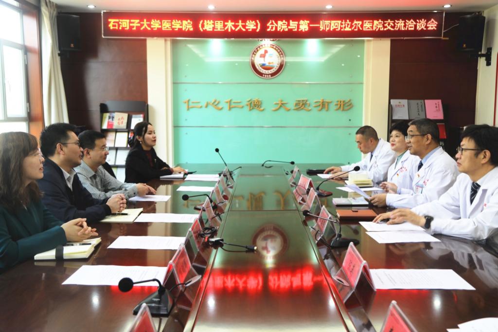 会上,王志强介绍了阿拉尔医院规划建设情况,表示医院将不断加强教学管理体系建设,健全临床教学制度,加强师资队伍建设,努力改善教学、宿舍、食堂等条件,彰显院校合作优势,共同促进医学人才培养和南疆卫生事业发展。谭塔林介绍了医院教学管理体系、临床师资及实习教学管理情况。