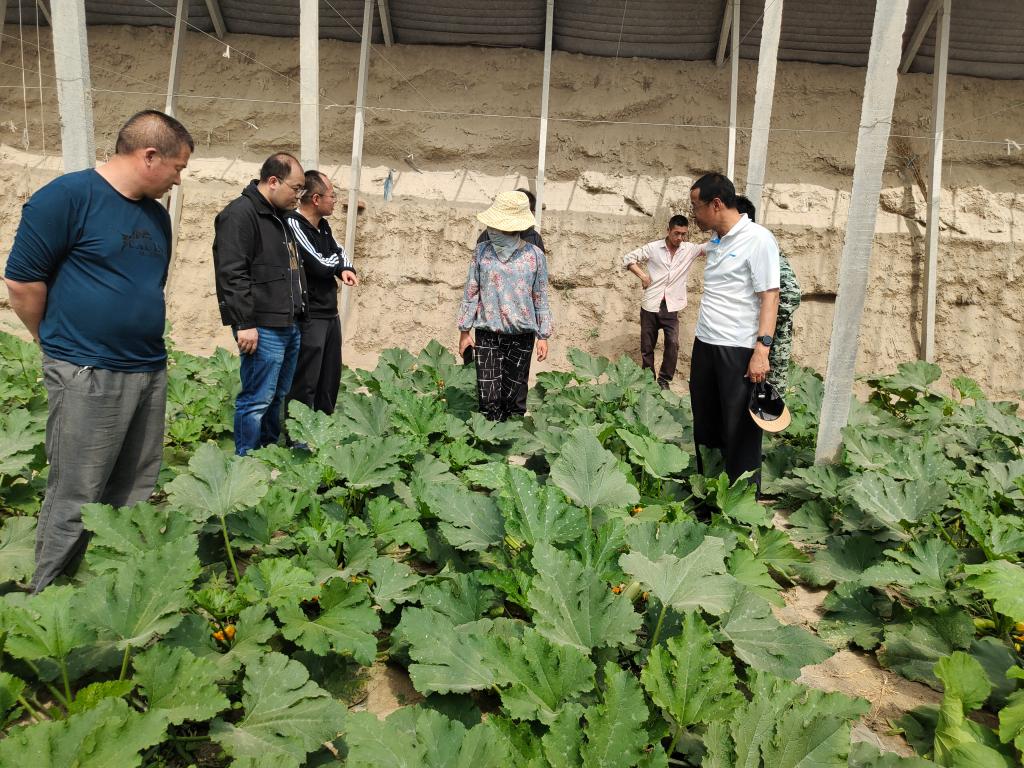 在温室大棚,谭占明副教授现场查看询问了解温室大棚蔬菜种植情况,从西红柿、辣椒、葫芦瓜等蔬菜的适宜座果位置、植株营养、水肥、生产管理、病虫防治等方面,给种植户进行了讲解。