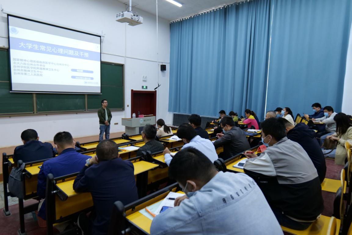 杨龙腾以“大学生常见心理问题及干预”为题,从“述情障碍”“双向情感障碍”“抑郁症”“焦虑障碍”“社交障碍”等方面讲解了常见心理疾病及治疗方法,并回答了大家的提问。