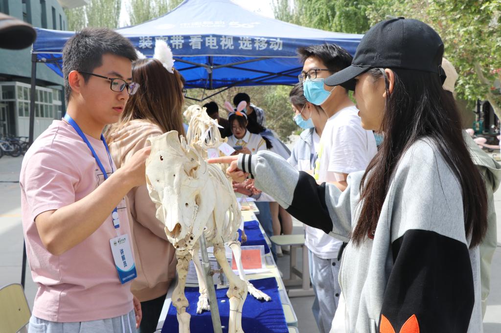 教学动物医院、各实验室多方联动,将实验动物、各类标本带到活动现场,让师生近距离感受动物医学专业文化。设立“流动小课堂”,普及学科历史、学科知识、科学养宠。