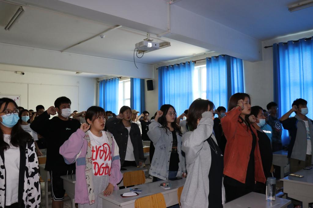 随后,党员带领团员青年宣誓,重温入团誓词,大家神态严肃认真,宣誓铿锵有力。最后,大家共唱《强国一代有我在》,唱出了“请党放心,强国有我”的青春誓言,表达了自觉扎根边疆,献身边疆的坚定决心。